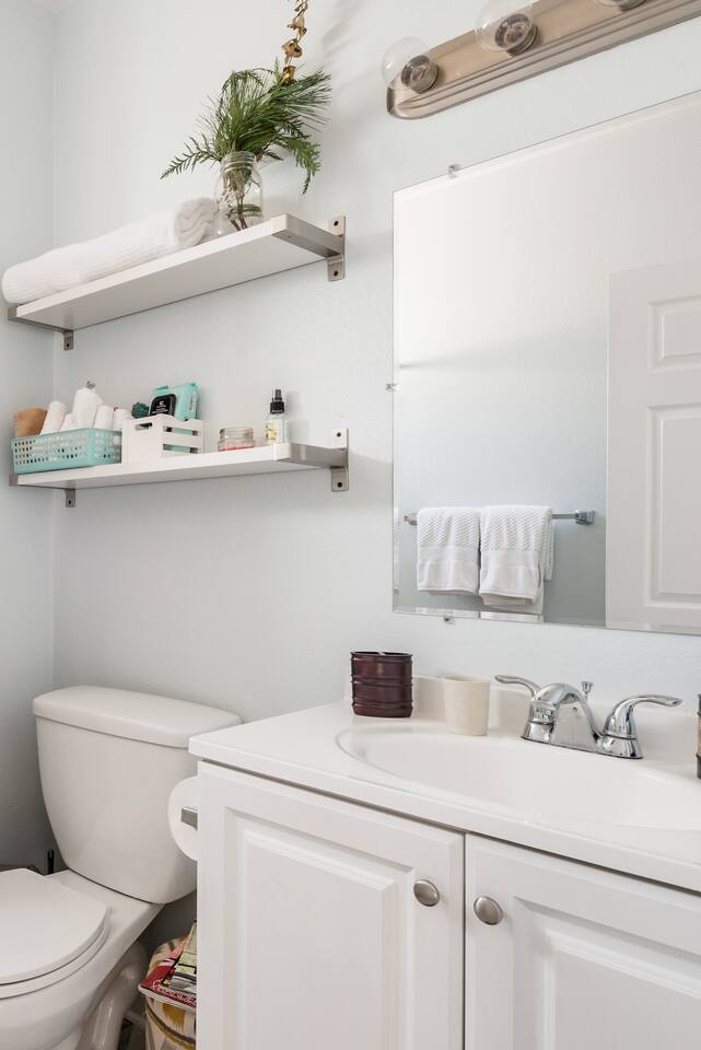 Guests have full access to the entire place. 2 bedrooms, 1 full bathroom, living room, dining room, front porch and back patio.