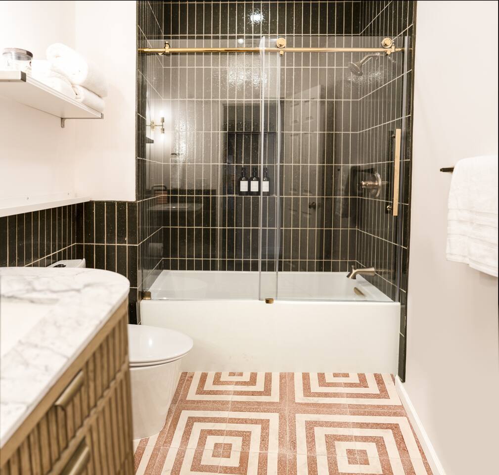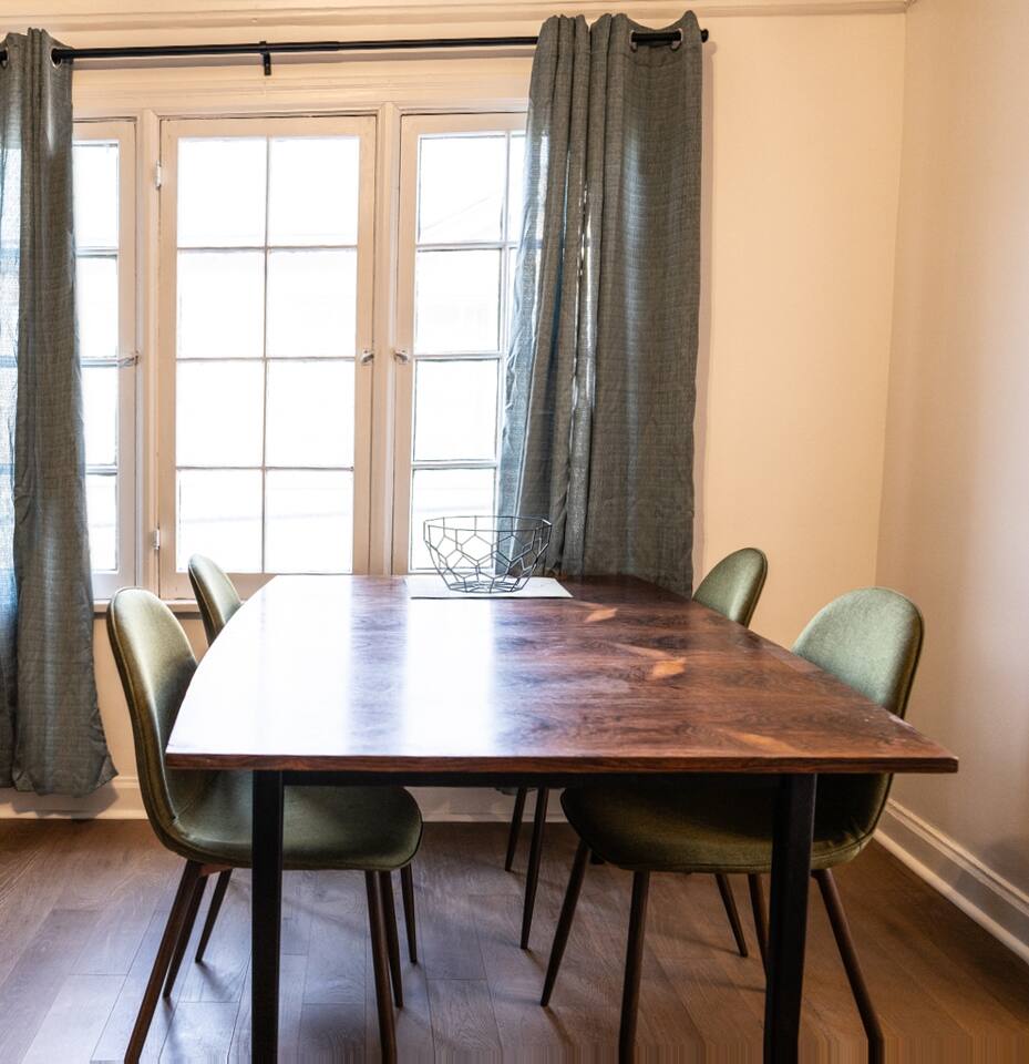 2.5 miles to Expo Line -Get to LAX in minutes 2.3 miles to Koreatown 12.5 miles to LAX 5 miles to Beverly Hills 3.2 miles to Culver City 3.4 miles to Beverly Grove 9.5 miles to Santa Monica 5.1 miles to USC 7 miles to Downtown LA Stay connected on the go with high-speed internet, ensuring seamless communication and remote work capabilities for the modern nomad. Near trendy cafes, restaurants, and local lunch and dinner spots like Palm Grove Social, Tartine, Cento, Mizlala and Alta Adams. Five minutes to Whole Foods and other great grocery stores such as Ralph's, Sprouts and Trader Joe's. Kitchen ➤ Dining table seats four ➤ Dishwasher ➤ Refrigerator ➤ Toaster ➤ Microwave ➤ Oven ➤ French Press ➤ Kettle ➤ Blender ➤ Silverware ➤ Pots ➤ Cooking Utensils ➤ Desk area Bedroom 1 ➤ Queen bed ➤ Luxury linens and duvet ➤ Side Table ➤ Closet Space Bedroom 2 ➤ King bed ➤ Television ➤ Luxury linens and duvet ➤ Side Table ➤ Closet Space ➤ En suite bathroom Bathroom ➤ Shampoo ➤ Conditioner ➤ Body wash ➤ Towels Laundry Room ➤ Washer ➤ Dryer Parking Garage parking only for standard sized vehicles. It will not fit an SUV. * Guests are not allowed to block driveway.* Free overnight street parking available. 30 plus stays please note: We start off guests with all essentials such as toilet paper, paper towels, soap and etc. However, after they are depleted, guests are responsible to replenish.